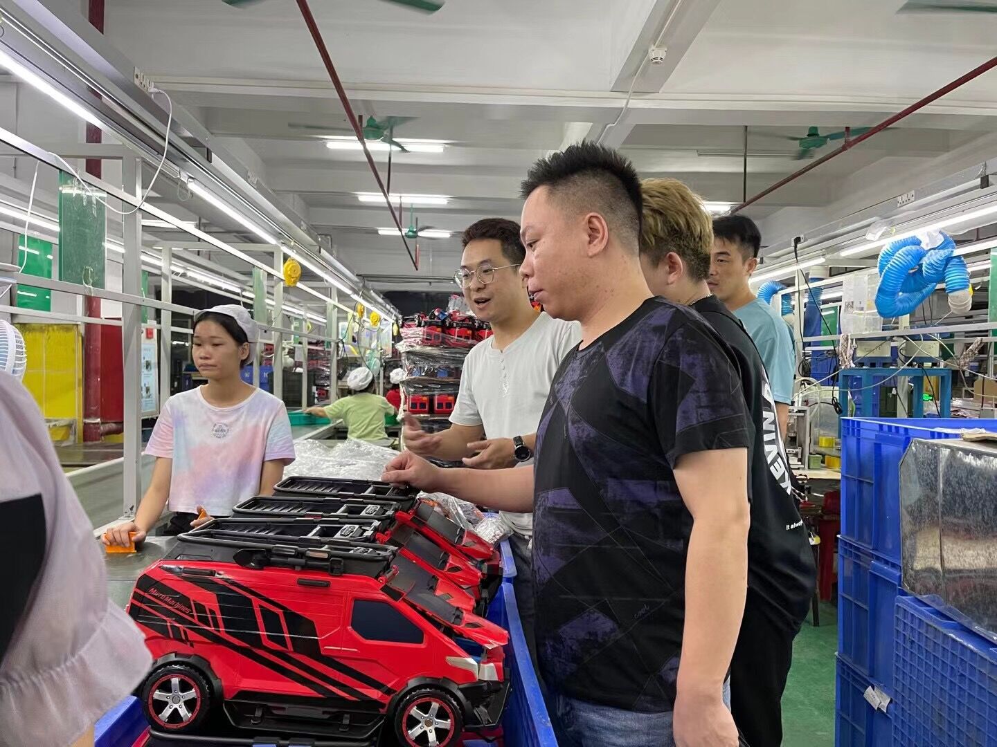 劉導(dǎo)及羅聰?shù)纫恍?/span>5人首先參觀了工廠,就公司的生產(chǎn)狀況做了詳細(xì)的了解。包括產(chǎn)品由設(shè)計(jì)開發(fā)到制造生產(chǎn)的每個(gè)環(huán)節(jié),對(duì)玩具的制造有了更新的認(rèn)識(shí)!工廠參觀后移步工廠會(huì)議廳,就自主品牌的品牌推廣及產(chǎn)品的網(wǎng)絡(luò)推廣做了深刻的交流。